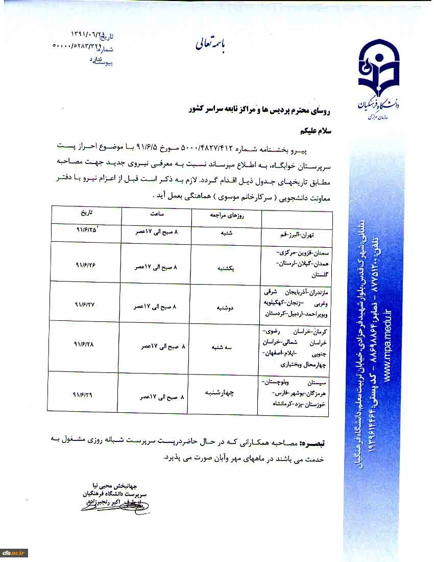 معرفی نیرو جهت مصاحبه سرپرست خوابگاهها/2583