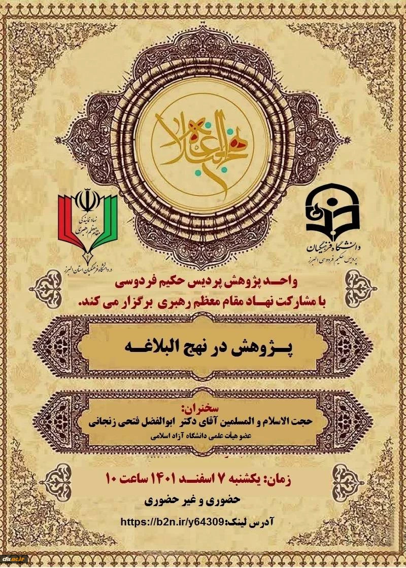 واحد پژوهش پردیس حکیم فردوسی البرز با مشارکت نهاد مقام معظم رهبری برگزار می کند. 2