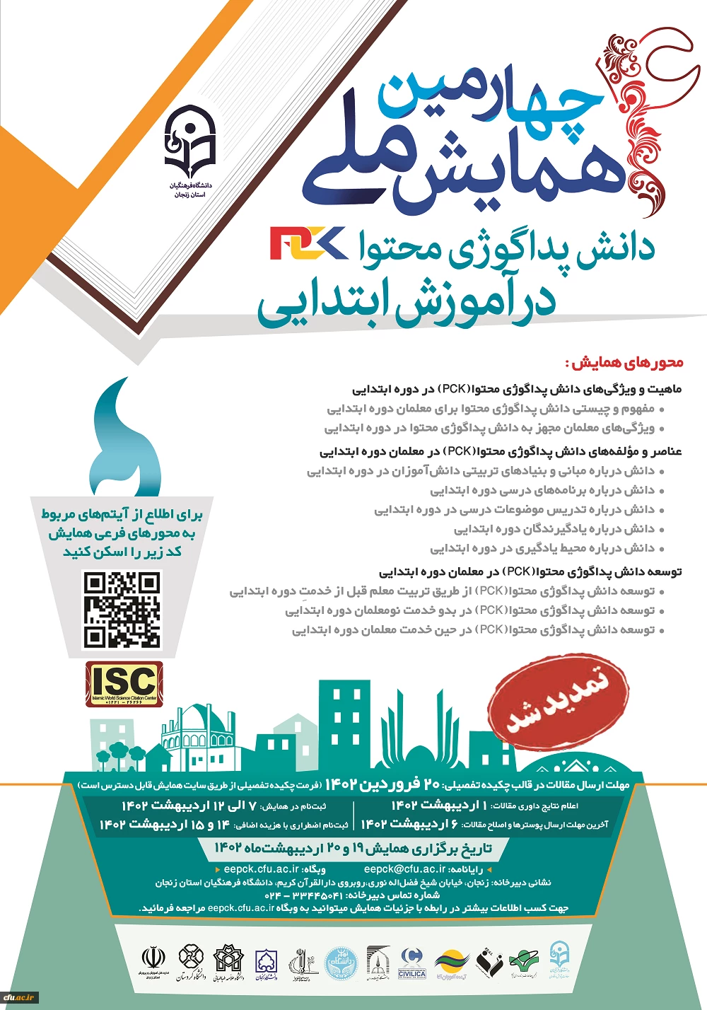 چهارمین همایش ملی دانش پداگوژی محتوا(PCK) در آموزش ابتدایی» به میزبانی دانشگاه فرهنگیان زنجان 2