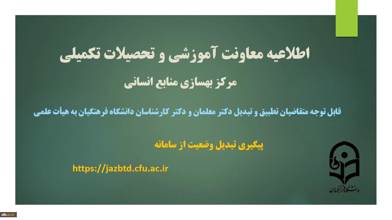 قابل توجه متقاضیان گرامی تطبیق و تبدیل وضعیت دکتر معلمان و دکتر کارشناسان دانشگاه فرهنگیان به هیأت علمی 2