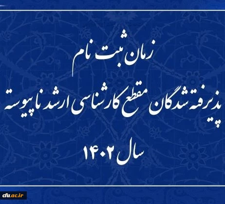 زمان ثبت نام پذیرفته شدگان مقطع کارشناسی ارشد ناپیوسته سال 1402 2
