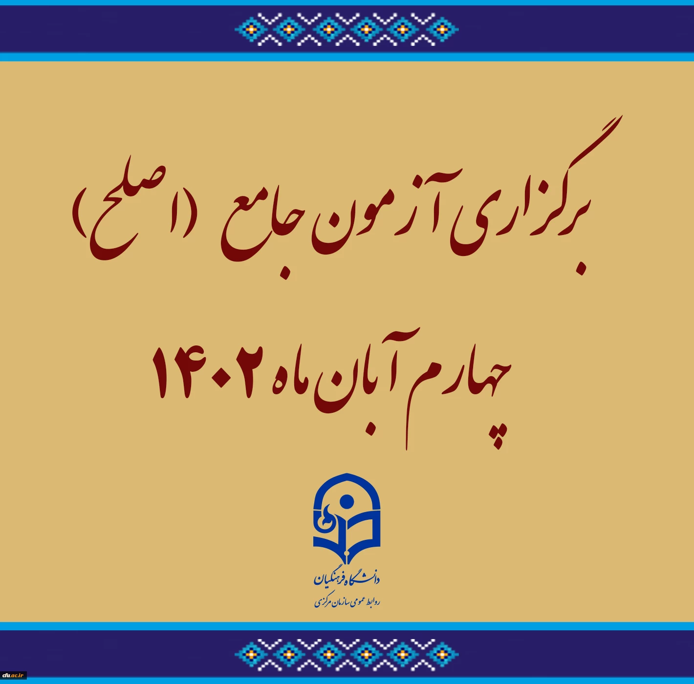 برگزاری آزمون جامع (اصلح)ویژه داوطلبان ورودی 1401 و جاماندگان سنوات قبل چهارم آبان ماه 1402 2