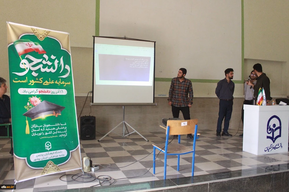با حضور رئیس دانشگاه فرهنگیان استان بوشهر و مسئولان شهرستان دشتستان؛ آئین بزرگداشت روز دانشجو در مرکز شهید رجایی برازجان برگزار شد 14
