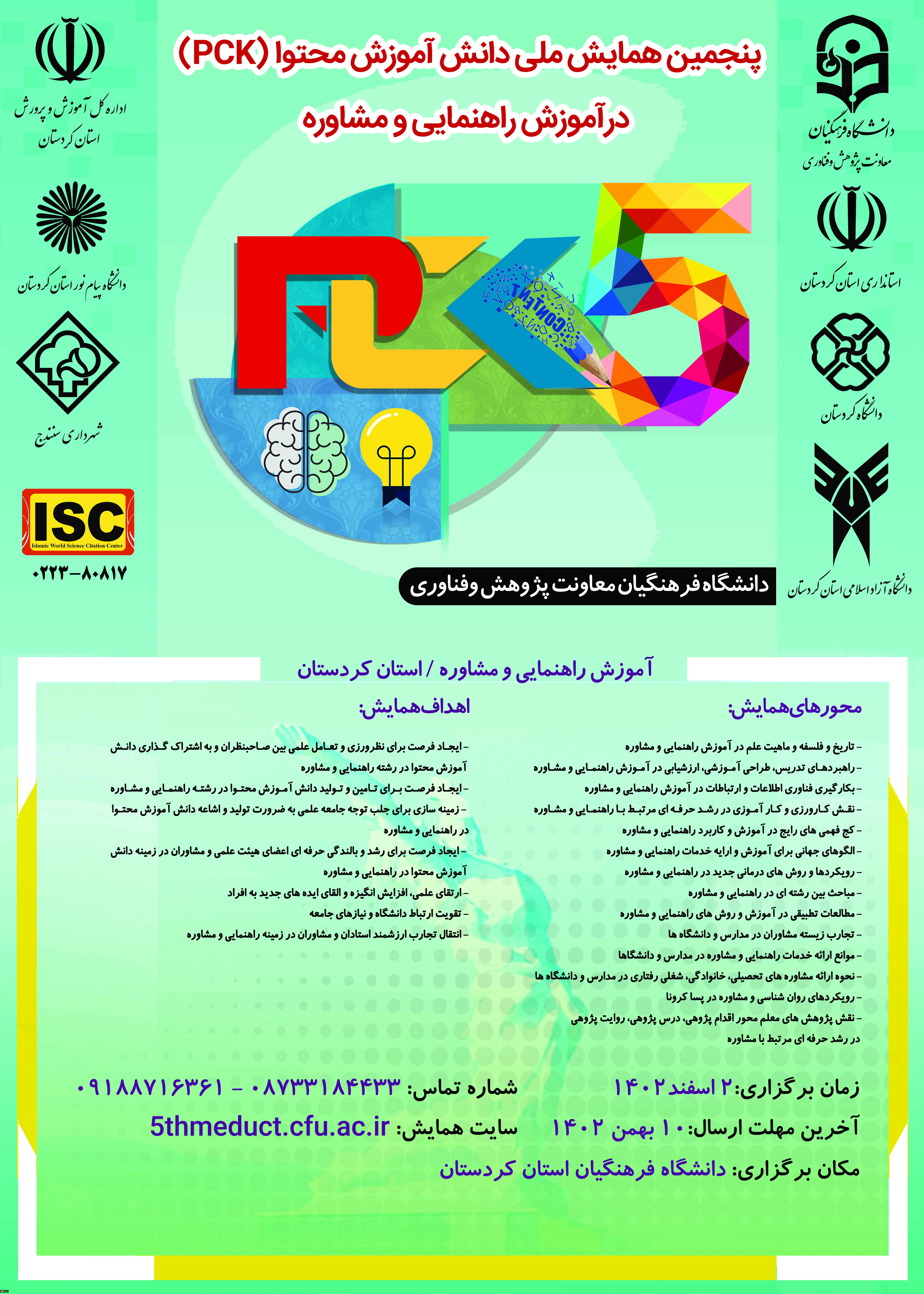 پنجمین همایش ملی دانش اموزش محتوا (PCK) در آموزش راهنمایی و مشاوره 2