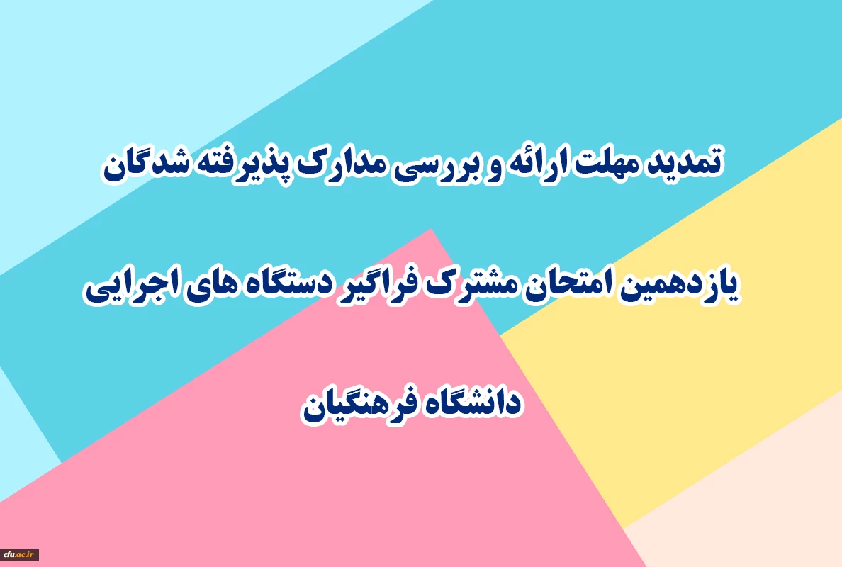 تمدید مهلت ارائه و بررسی مدارک پذیرفته شدگان یازدهمین امتحان مشترک فراگیر دستگاه های اجرایی دانشگاه فرهنگیان 2