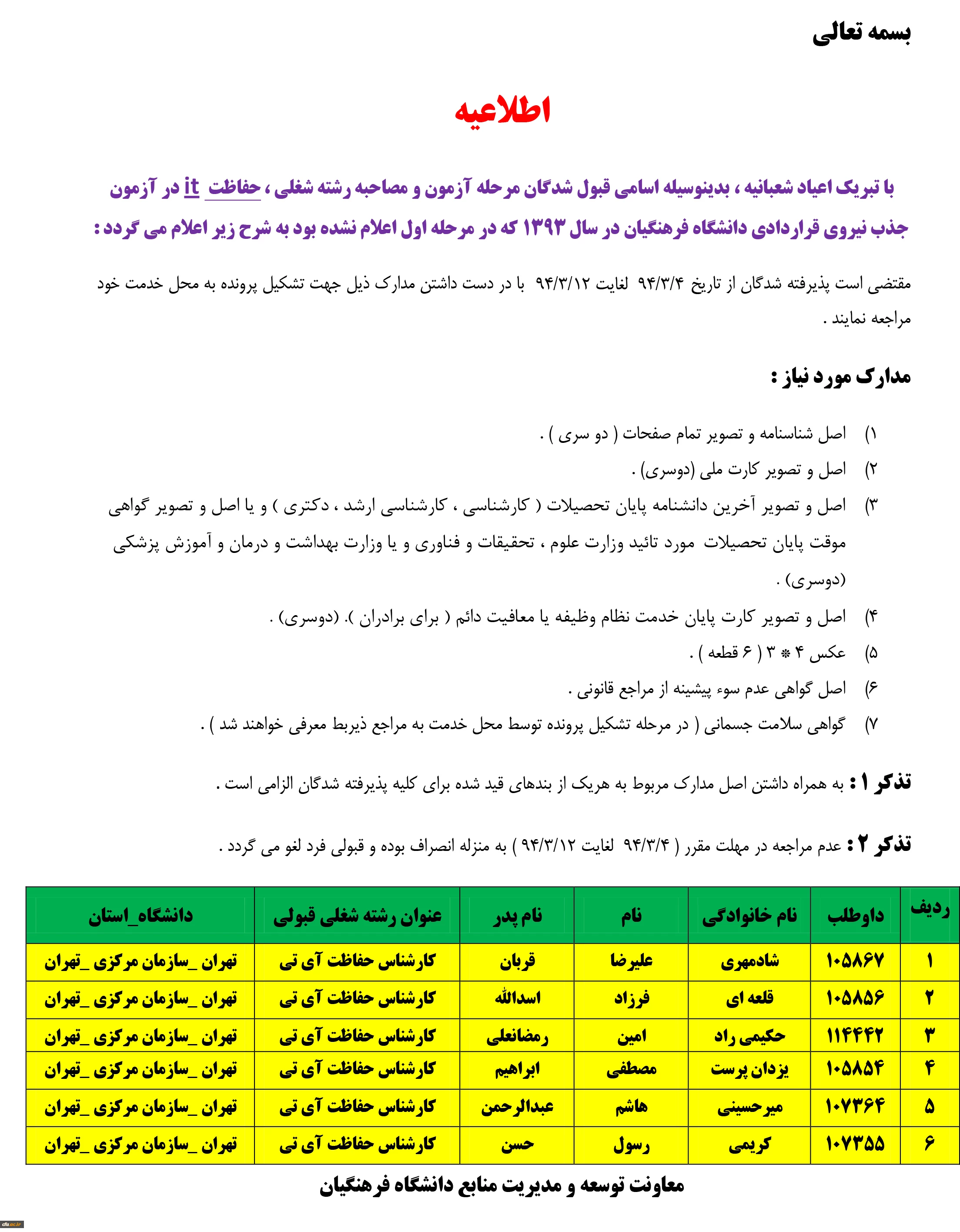 اطلاعیه اداری