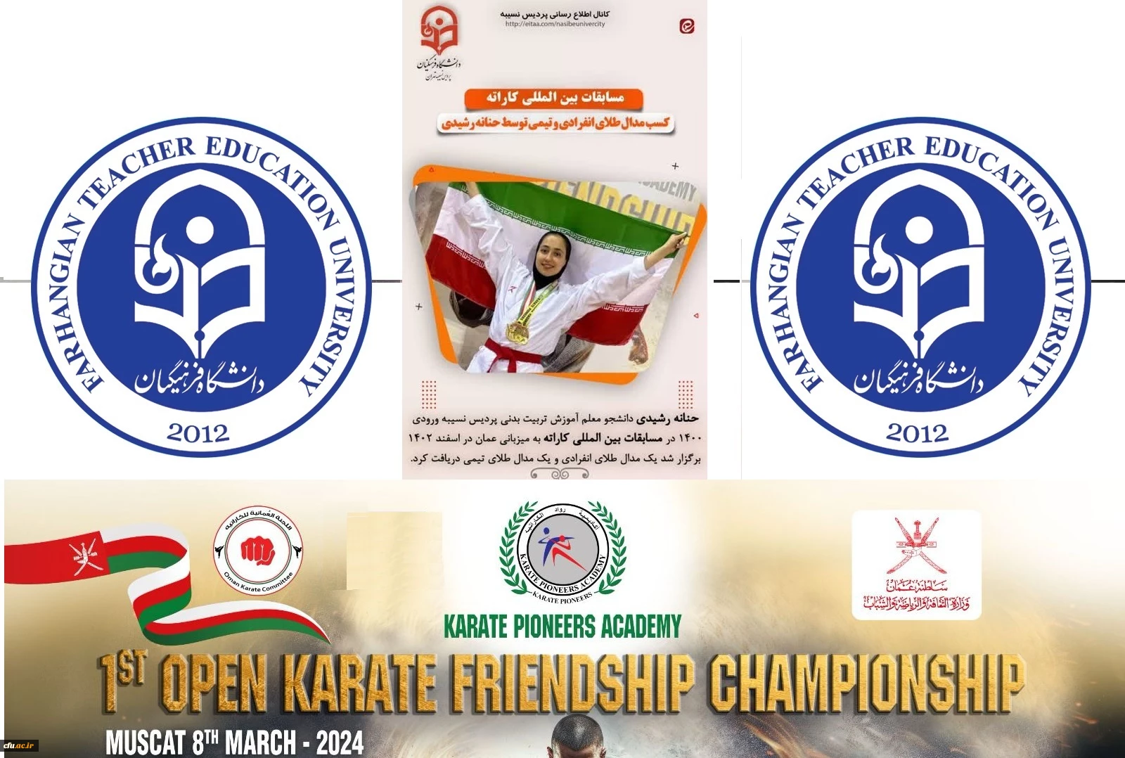 کسب مدال طلای انفرادی و مدال طلای تیمی توسط دانشجومعلم حنانه رشیدی در مسابقات بین المللی کاراته کشور عمان 2