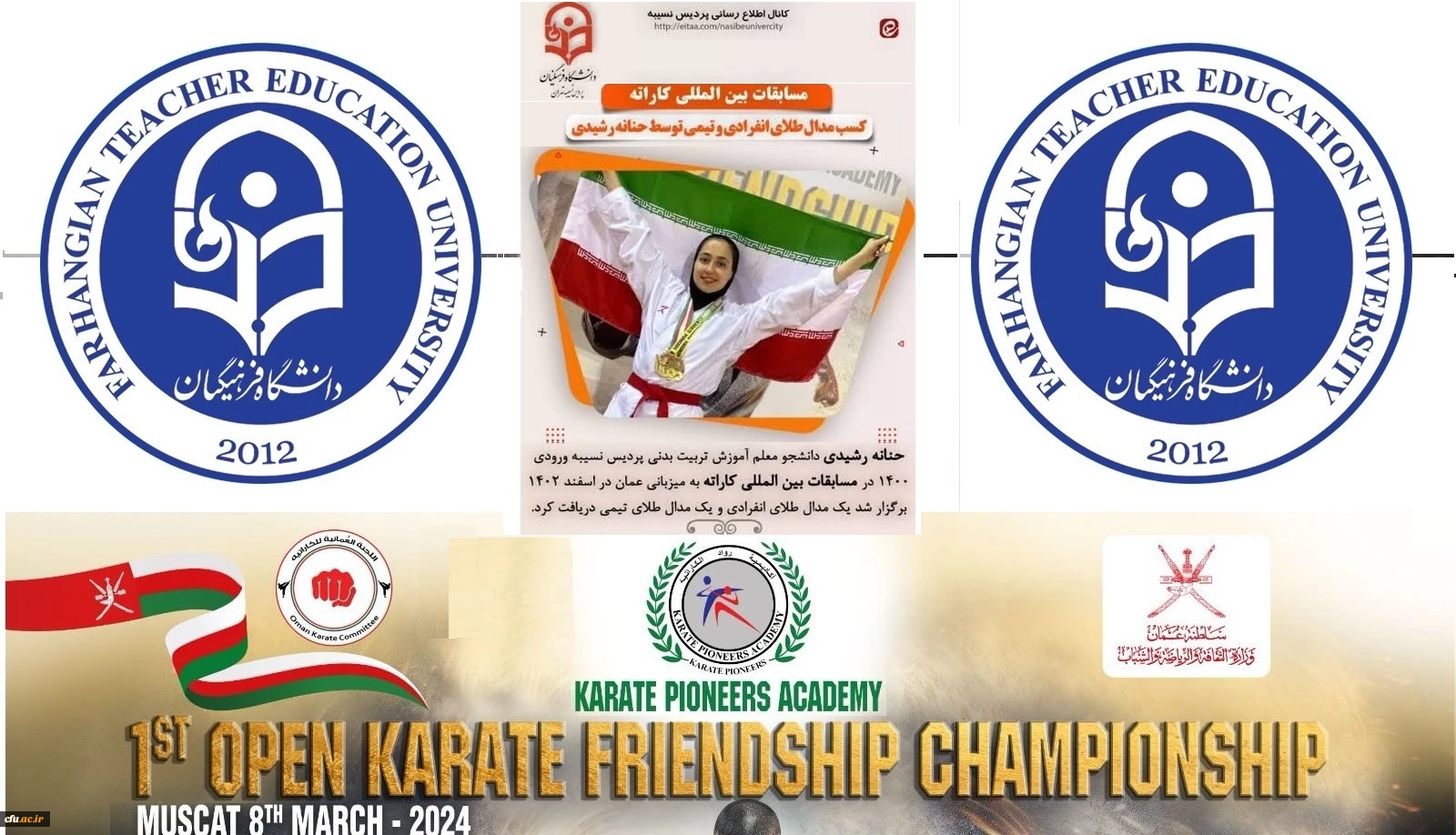 کسب مدال طلای انفرادی و مدال طلای تیمی توسط دانشجومعلم حنانه رشیدی در مسابقات بین المللی کاراته کشور عمان 4
