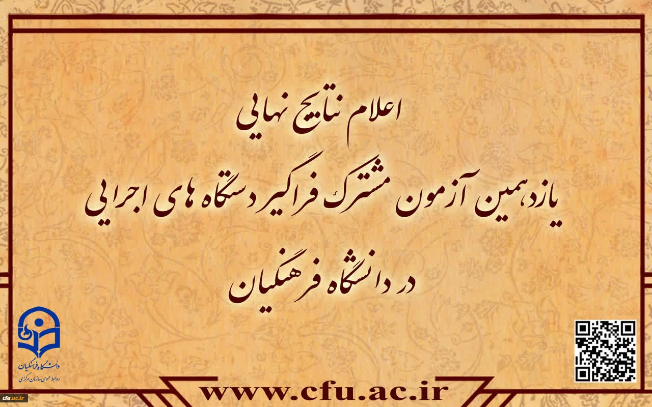 اعلام نتایج نهایی آزمون استخدامی دانشگاه فرهنگیان در یازدهمین امتحان مشترک فراگیر دستگاه های اجرایی کشور 2