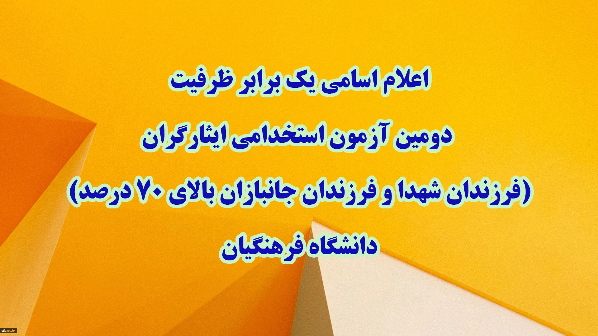 اعلام اسامی یک برابر ظرفیت دومین آزمون استخدامی ایثارگران (فرزندان شهدا و فرزندان جانبازان بالای 70 درصد) دانشگاه فرهنگیان 2