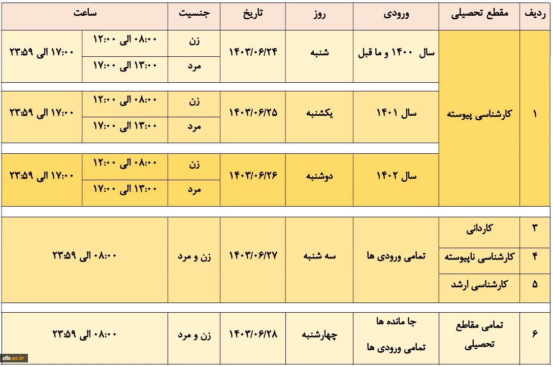 برنامه زمانبندی نیمسال اول سال تحصیلی 1404-1403 2