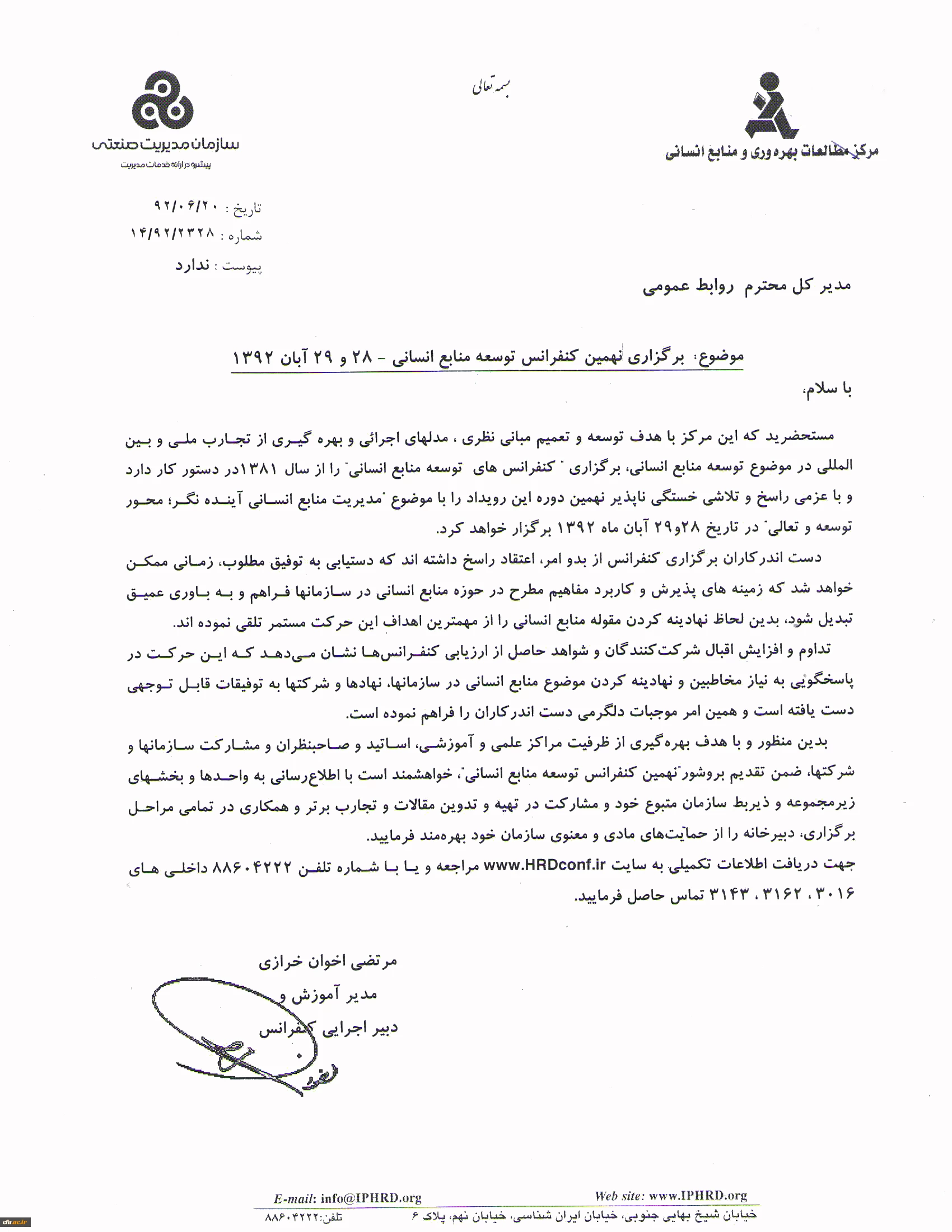برگزاری نهمین کنفرانس توسعه منابع انسانی