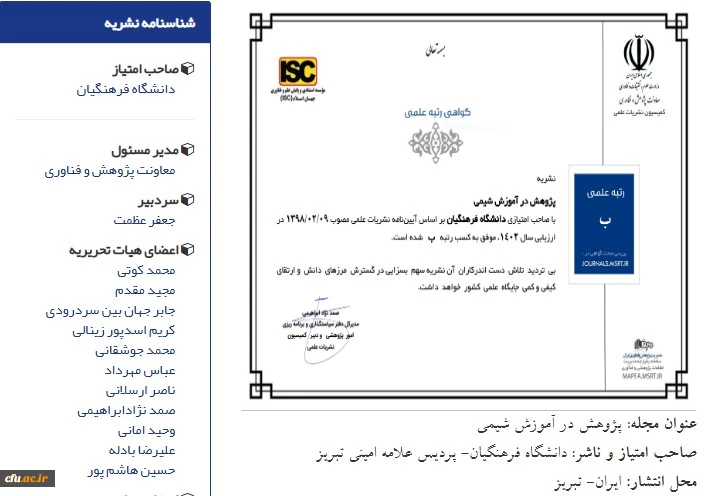 چاپ و انتشار 21 عنوان منبع آموزشی و کسب رتبه علمی 3 نشریه دردانشگاه فرهنگیان 3