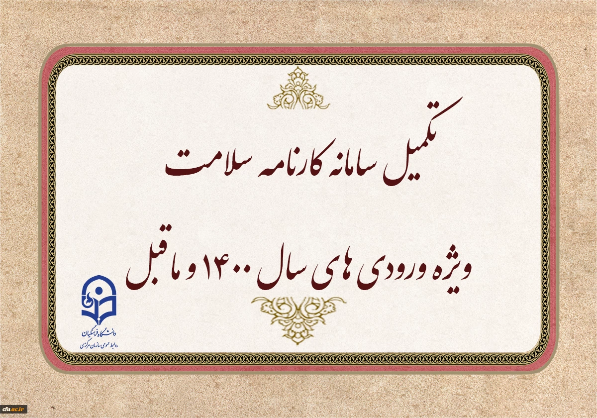 تکمیل سامانه کارنامه سلامت ویژه ورودی های سال 1400 و ماقبل 2
