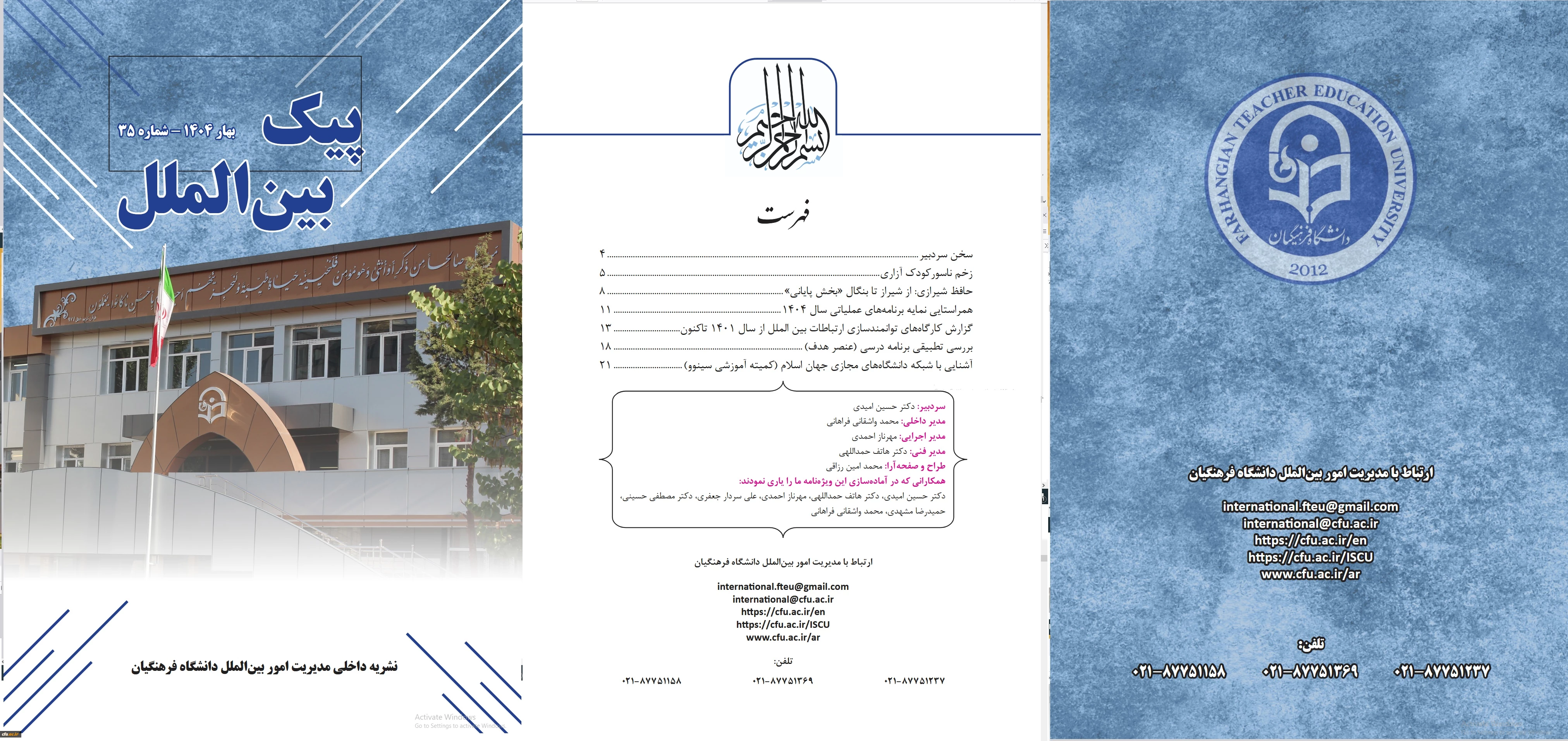 پیک بین الملل با هدف انتشار مطالب مرتبط با پایش و پویش بین المللی دانشگاه فرهنگیان به صورت فصلی منتشر می شود. 3