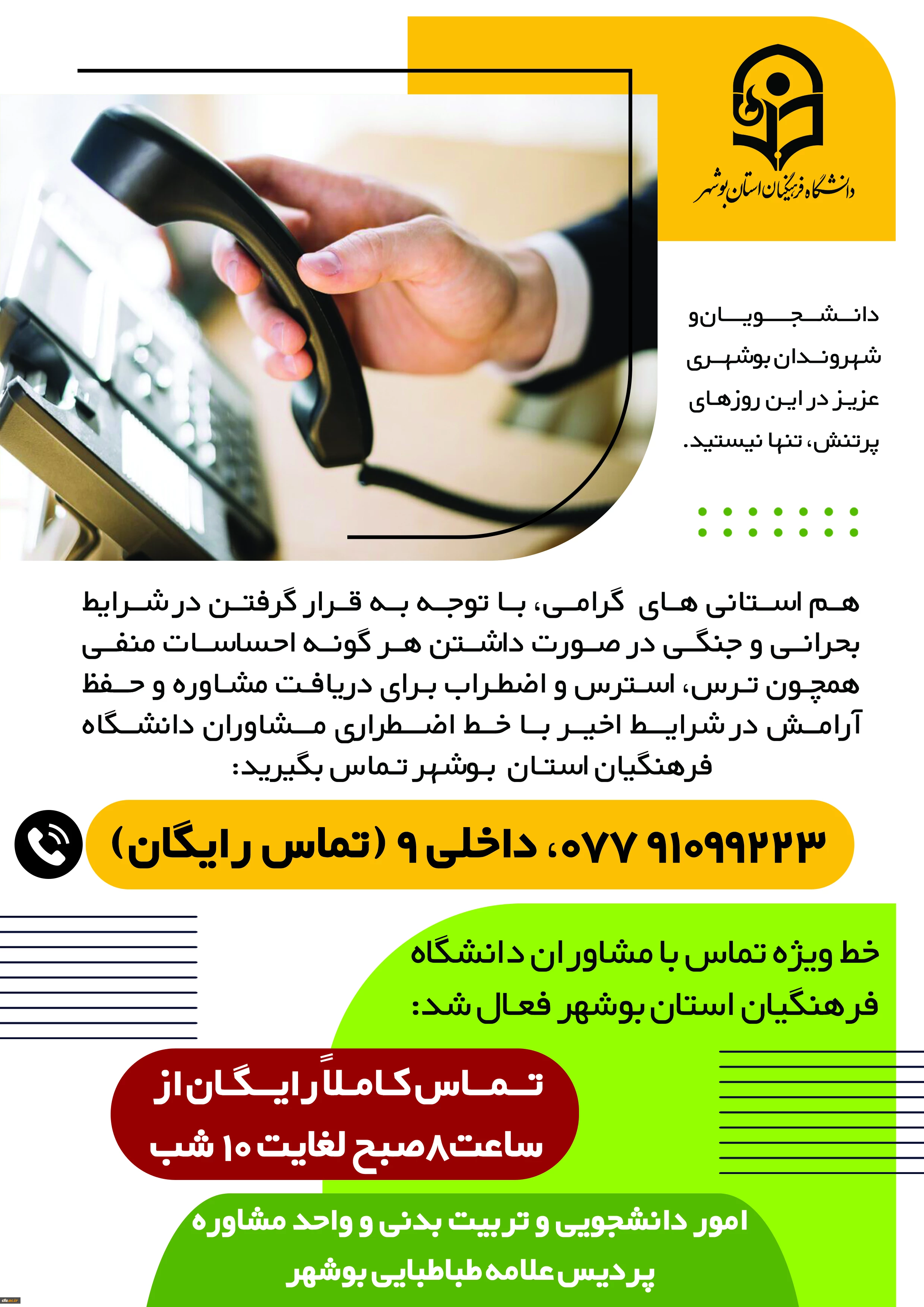 رئیس دانشگاه فرهنگیان استان بوشهر: راه اندازی خط ویژه مشاوره رایگان در این دانشگاه 2