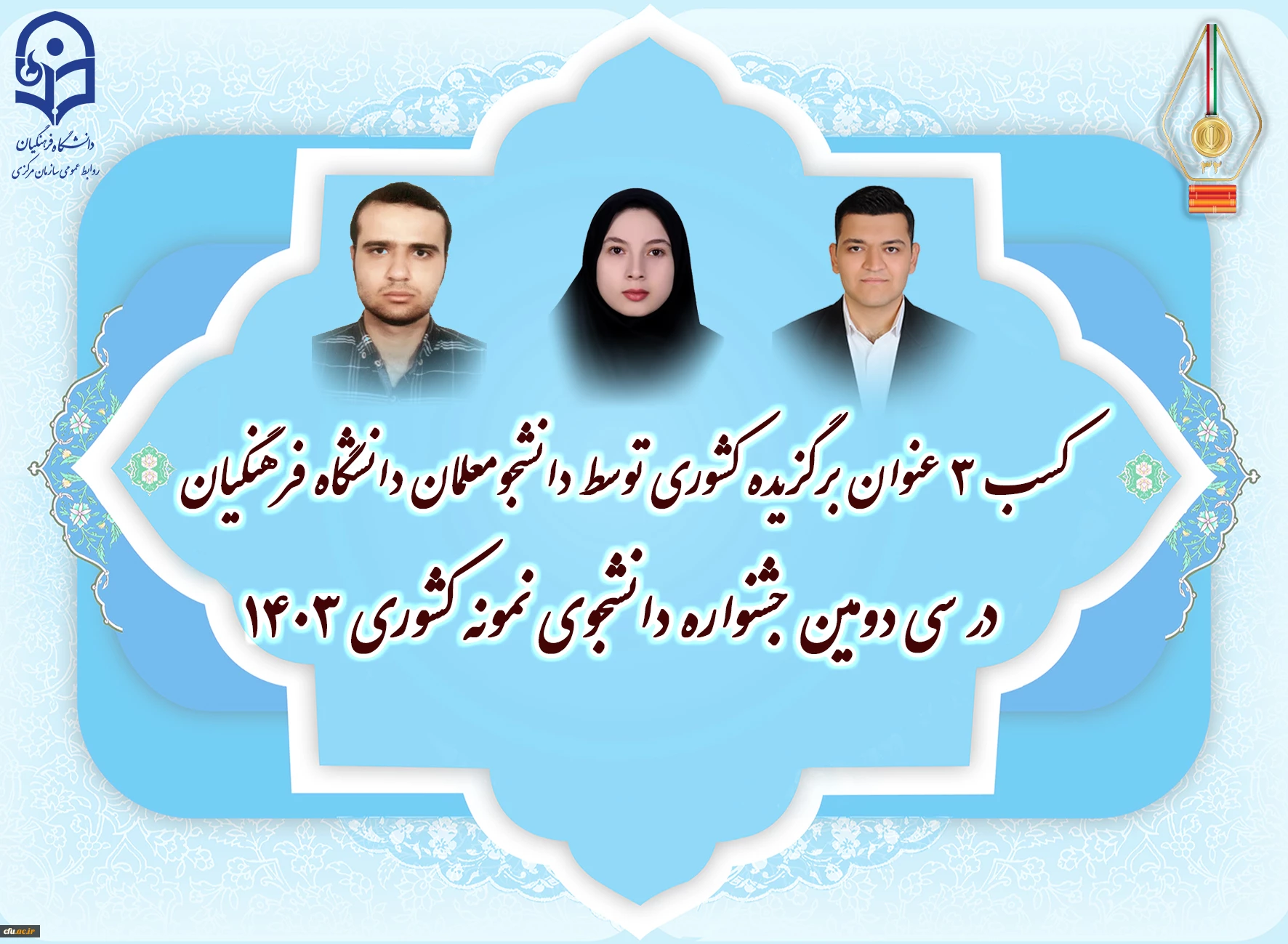 سه دانشجومعلم، به عنوان دانشجوی نمونه کشوری معرفی شدند. 5