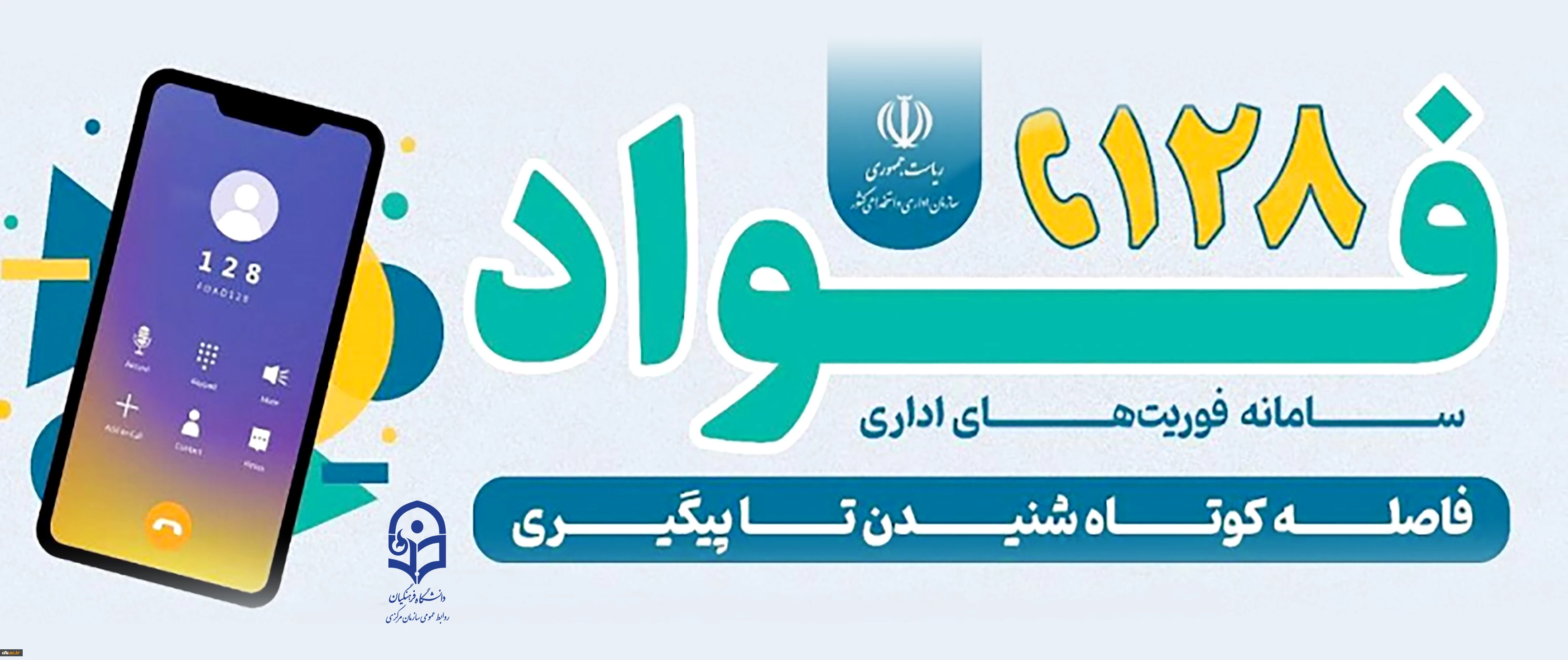 سامانه فواد ۱۲۸ یک سامانه ملی برای ثبت شکایت فوری از عملکرد نظام اداری است که پیگیری را تا پاسخ نهایی انجام می دهد. 2