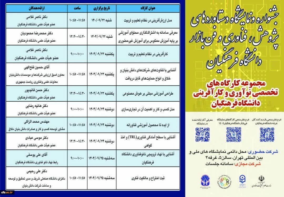 مجموعه ای از کارگاه های تخصصی در سیزدهمین جشنواره و نمایشگاه دستاوردهای پژوهش، فناوری و فن بازار 2