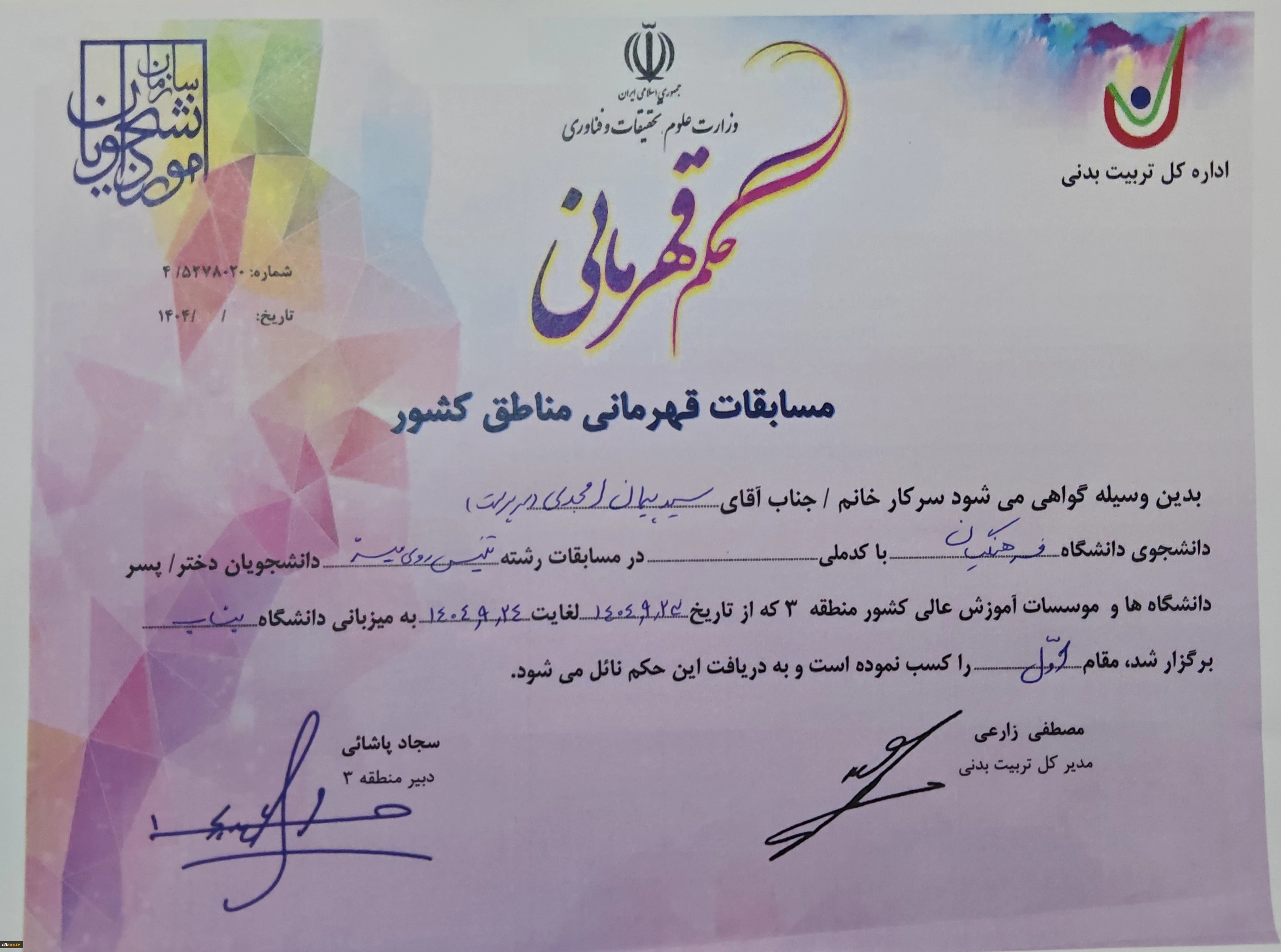 قهرمانی تیم تنیس روی میز دانشگاه فرهنگیان آذربایجان شرقی در منطقه 3 کشور 11