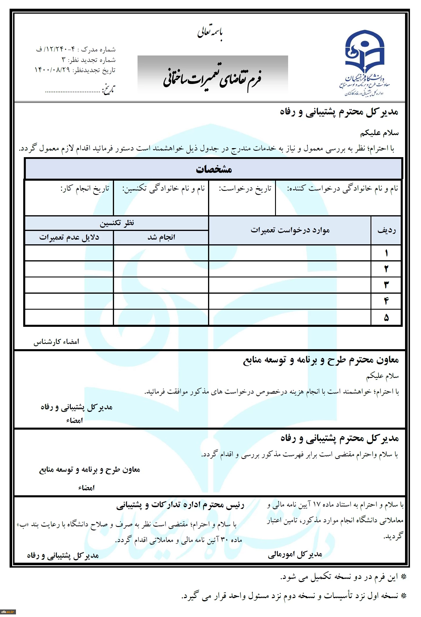 فرم درخواست تقاضای تعمیرات ساختمانی
