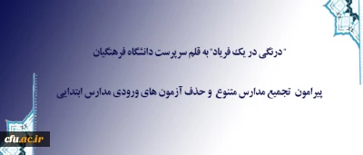" درنگی در یک فریاد" به قلم سرپرست دانشگاه فرهنگیان پیرامون تجمیع مدارس متنوع و حذف آزمون های ورودی مدارس ابتدایی پس از بحث های مطرح شده در خصوص تجمیع مدارس متنوع و حذف آزمون های ورودی مدارس ابتدایی توسط وزیر محترم ...